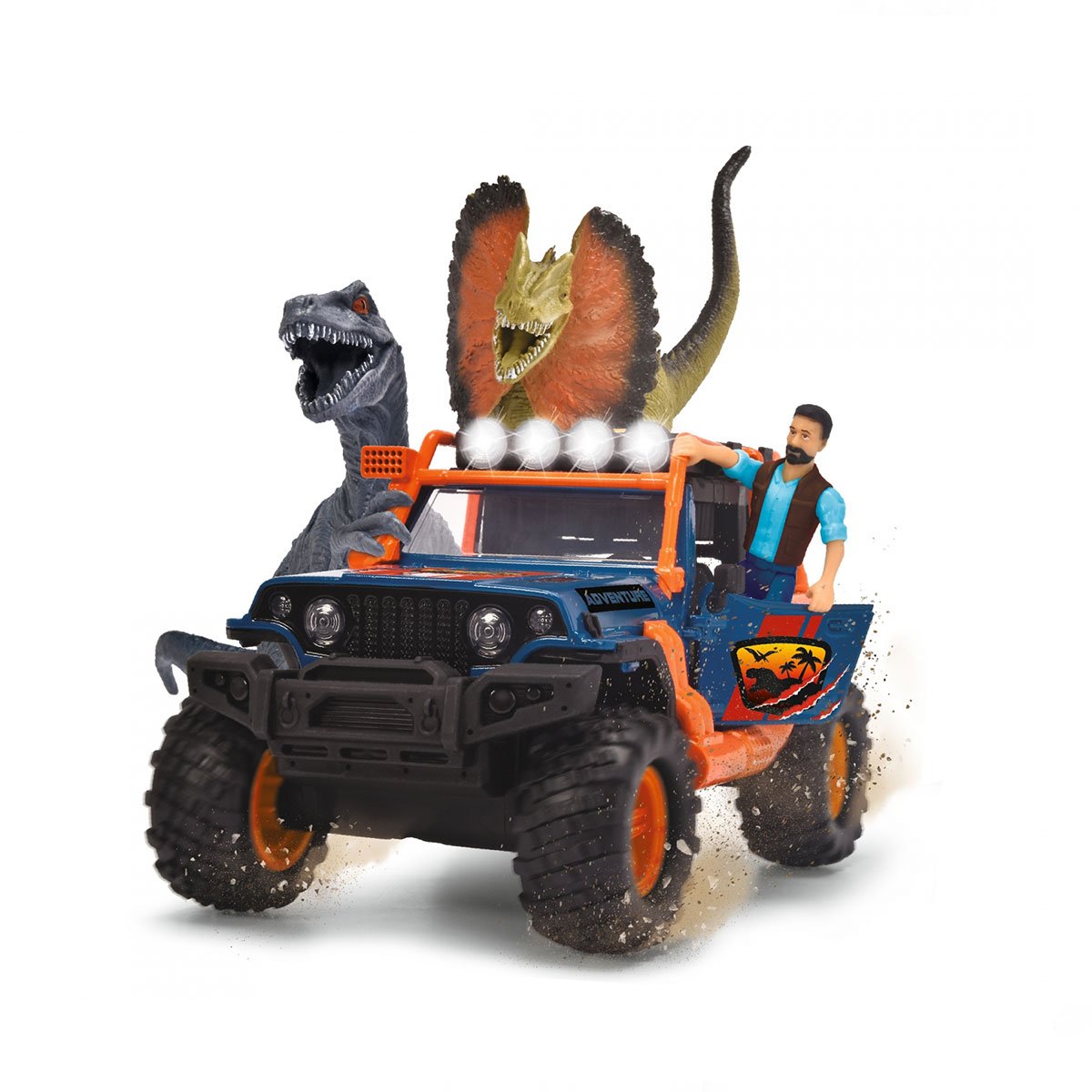 Dickie Toys – Dino Commander Römorklu "Jeepster Commander" oyuncak araç, oyuncak figür ve 2 dinozor içerir.