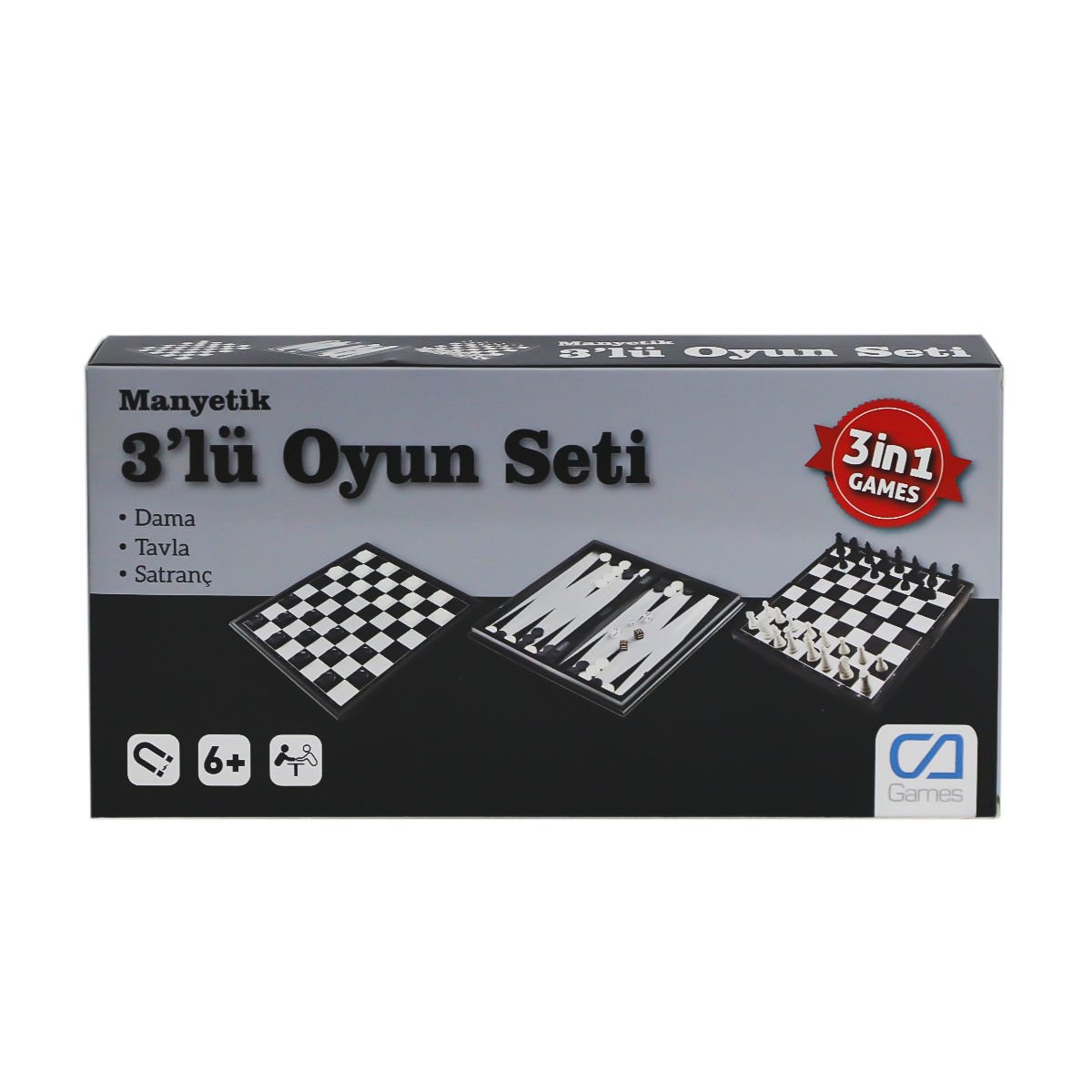 120 CAOYN-10002 Manyetik 3'lü Oyun Seti (Tavla,Dama,Satranç) -CaGames