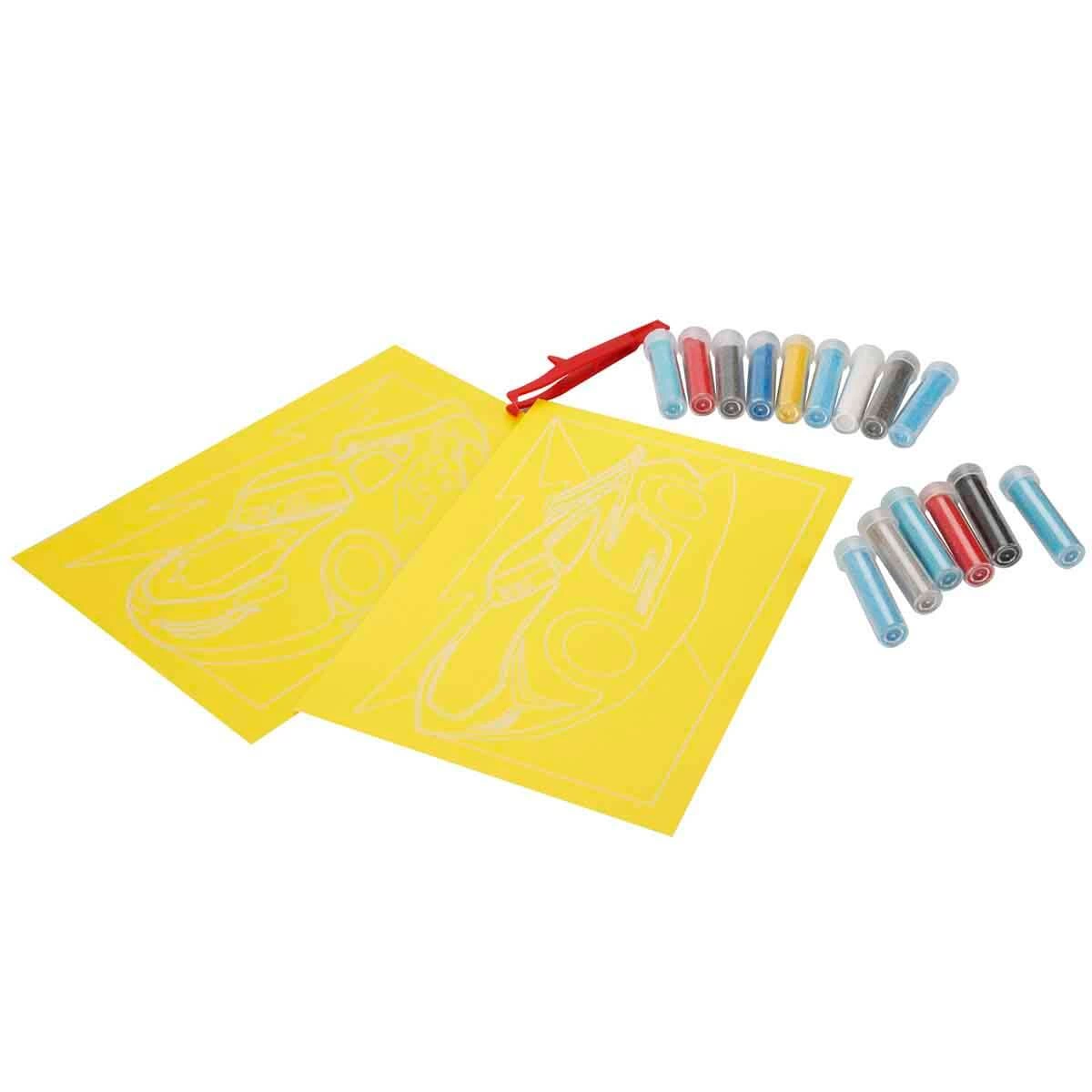 zevkine göre renklendirebilirsin. Yapması çok eğlenceli 2in1 Disney Cars Kum Boyama Seti ile haydi, kağıtları renklendirmeye başla!