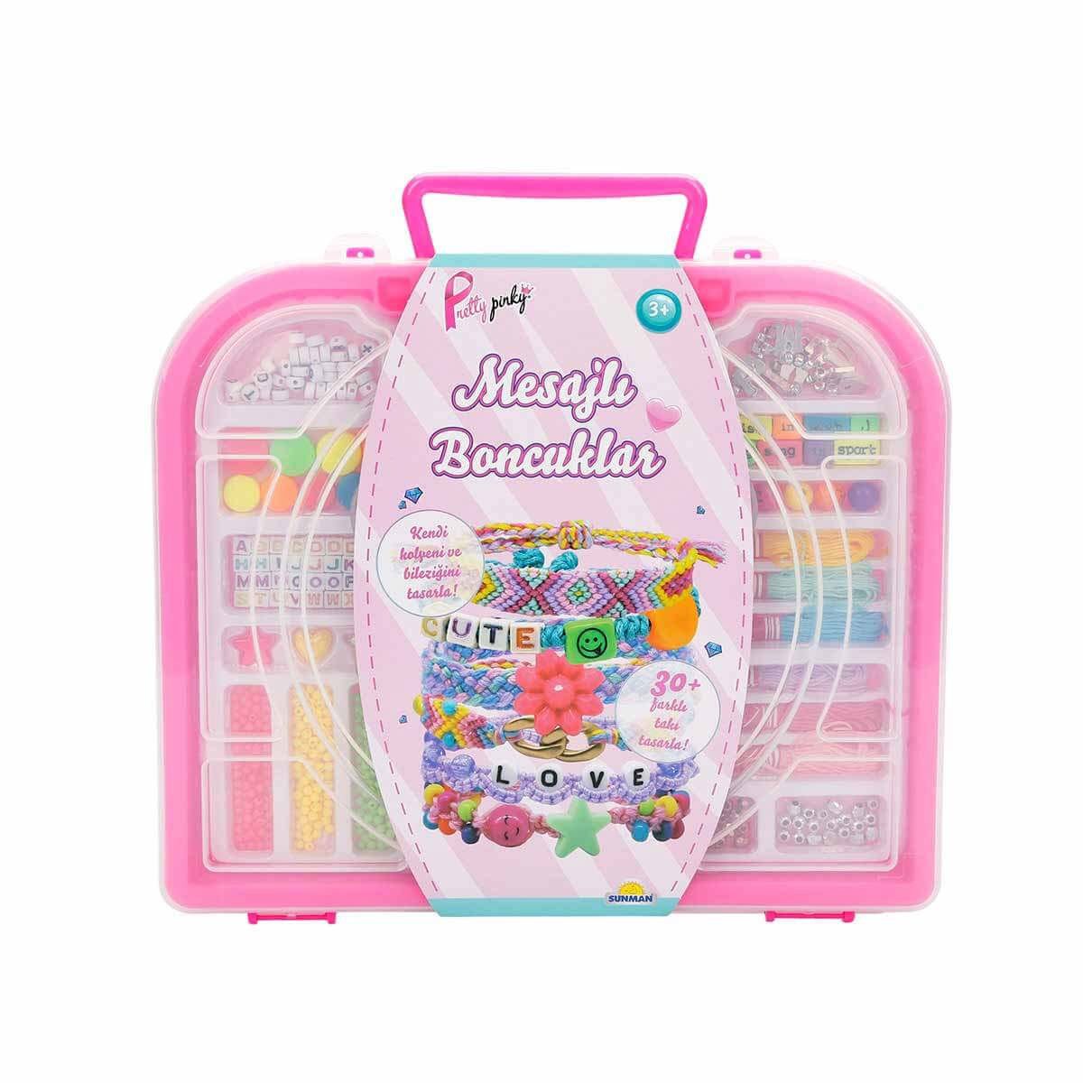 3 farklı şekildeki harf boncukları, tatlı mesajlar içeren boncuklar, rengarenk ipler ve daha birçok aksesuar ile hayallerinizdeki takıları yapabilirsiniz!