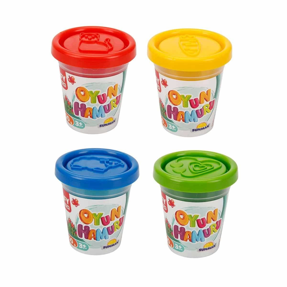 Set içerisinde; kırmızı, sarı, mavi ve yeşil olmak üzere her biri 50 g olan 4 adet oyun hamuru yer almaktadır.
