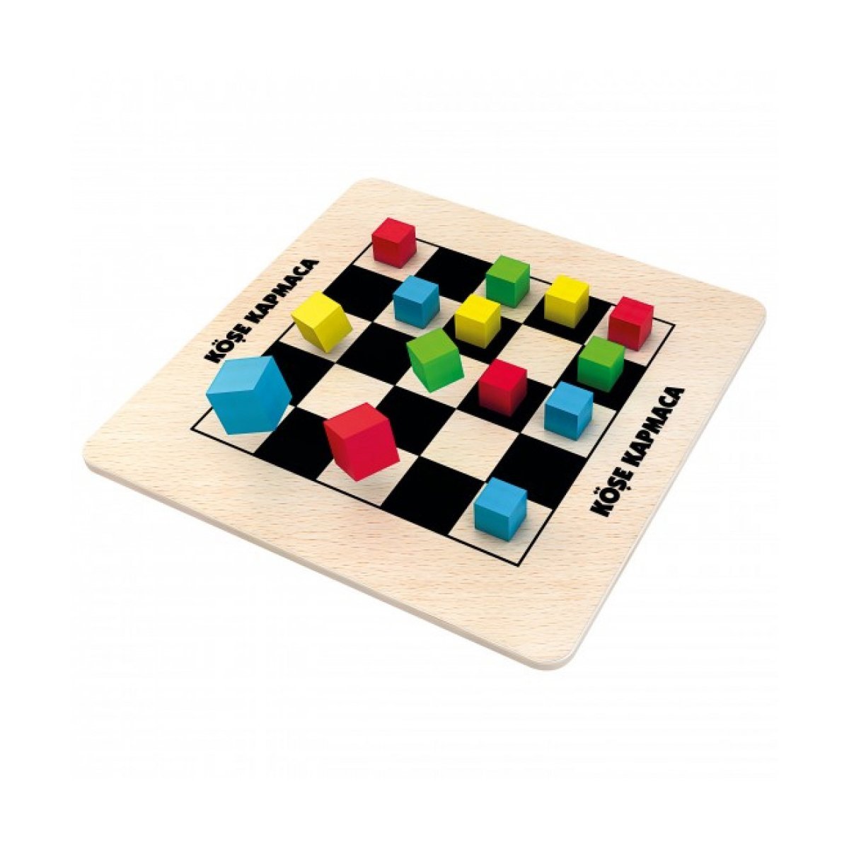 REDKA Köşe Kapmaca kutusunda24 adet ahşap renkli küp ve bambu kaplama mdf oyun zemini bulunur.