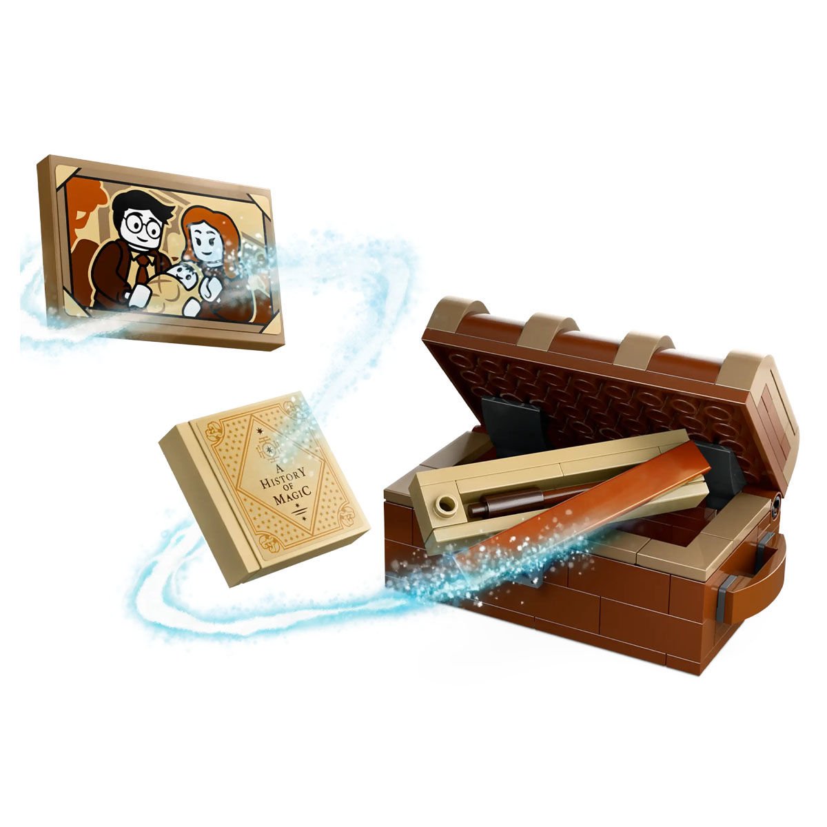 - Eğlenceli aksesuarlar - Bu çocuk oyuncağı ayrıca Harry Potter™ ve ailesinin bir portresini, bir Sihir Tarihi kitap öğesini ve kasasında tuğladan yapılmış bir değnek içeren inşa edilebilir bir bagaj içerir.
