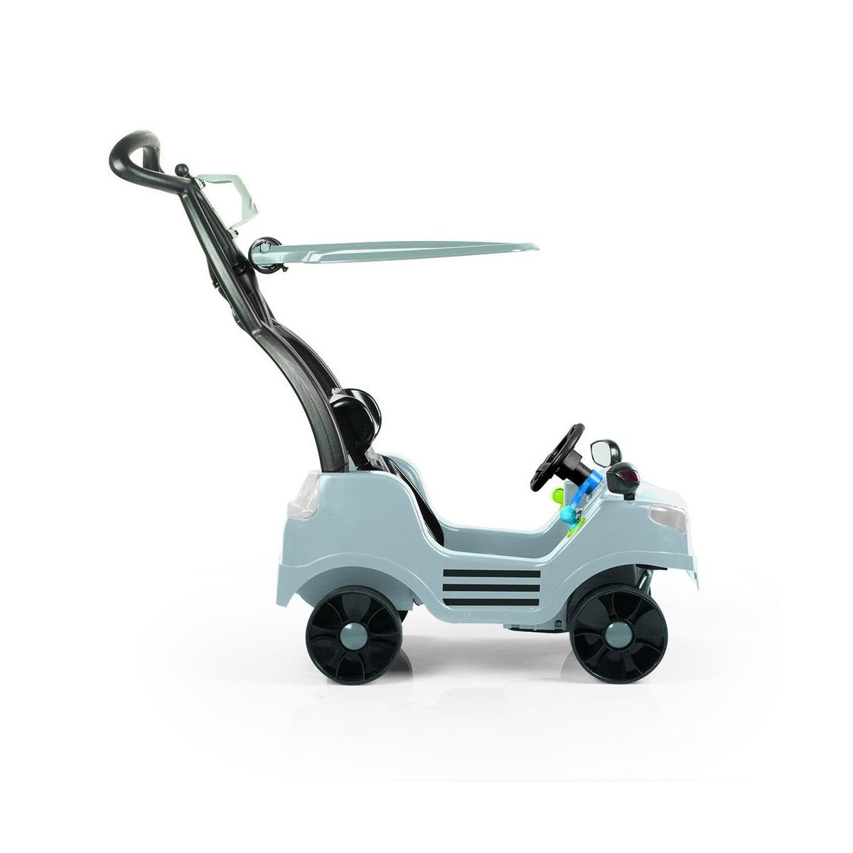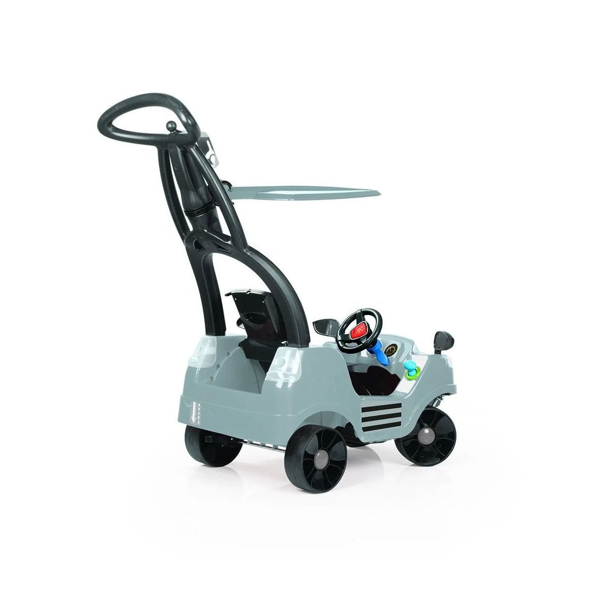 12 ay ve üzeri çocuklar için uygundur. 109,3x117x60 cm ölçülerindedir. Ayarlanabilir kademeli sırt desteği ve pet şise aksesuarı ile rahat bir kullanım imkanı sağlar. Kemerlidir. Ön tekerlekler 360 derece dönme kapasitesine sahiptir.