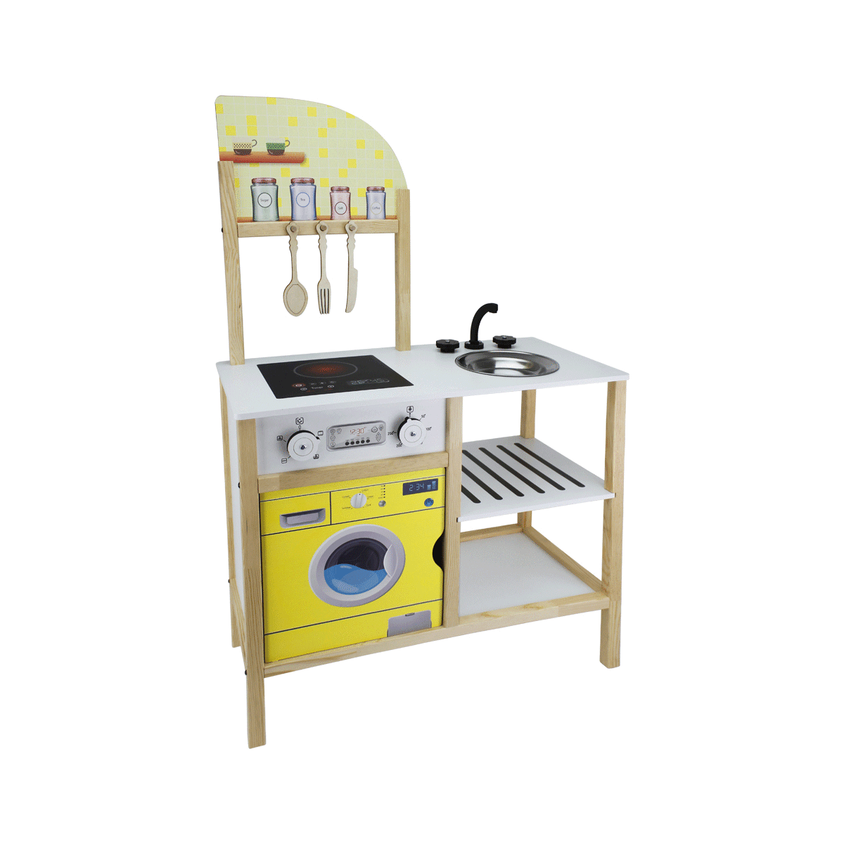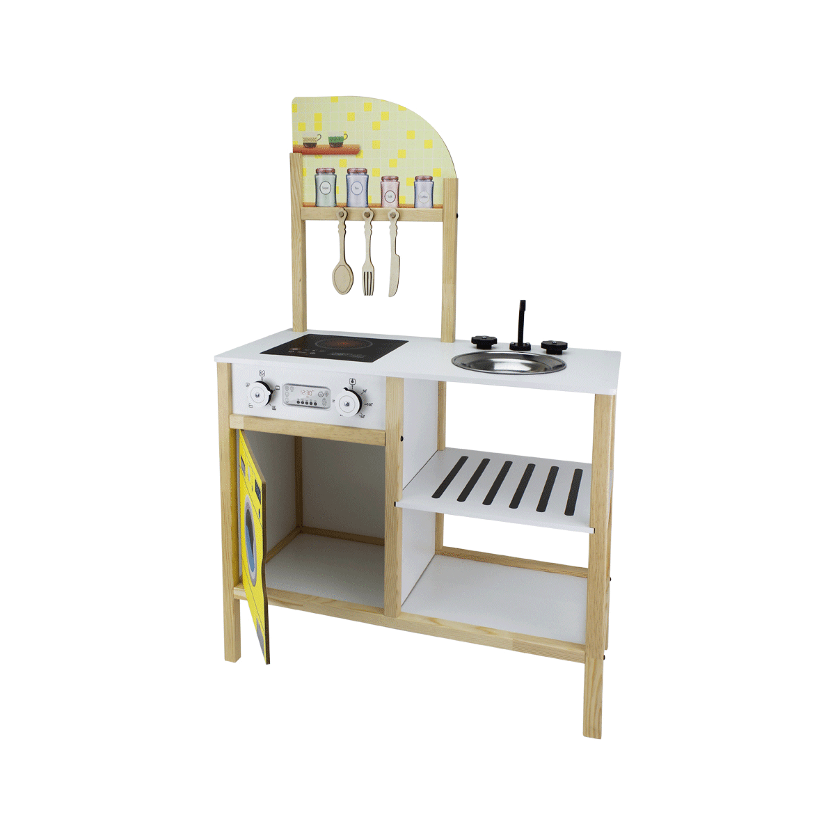 Görsel baskılar uv baskı teknolojisi ile yapılmıştır. Evye, fırın düğmeleri ve musluk vanaları çocuğunuzun gerçekçi oyun dünyası için birebir dönebilir şekilde tasarlanmıştır.