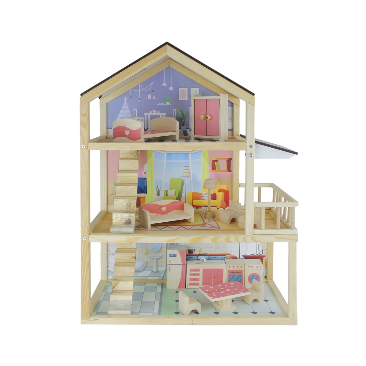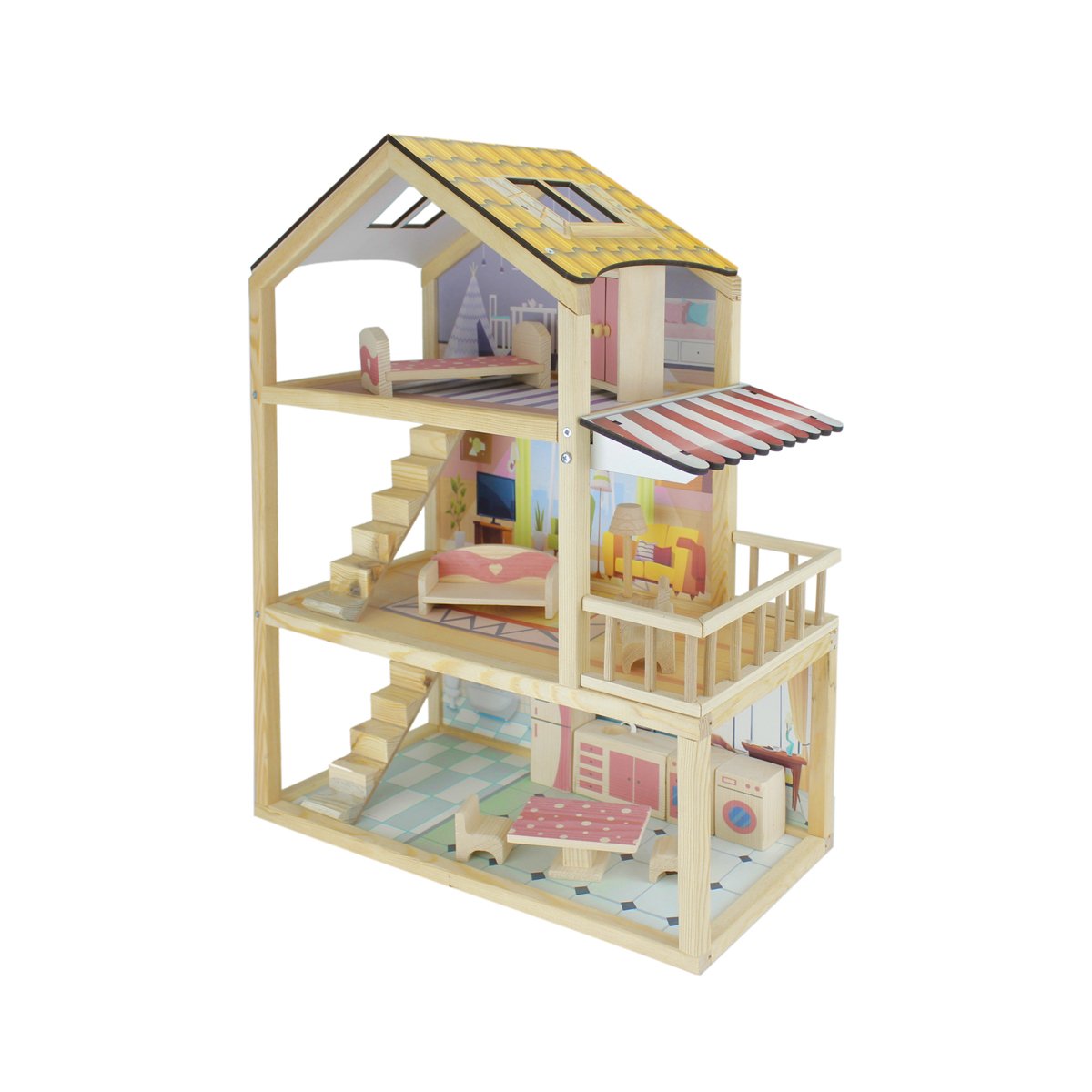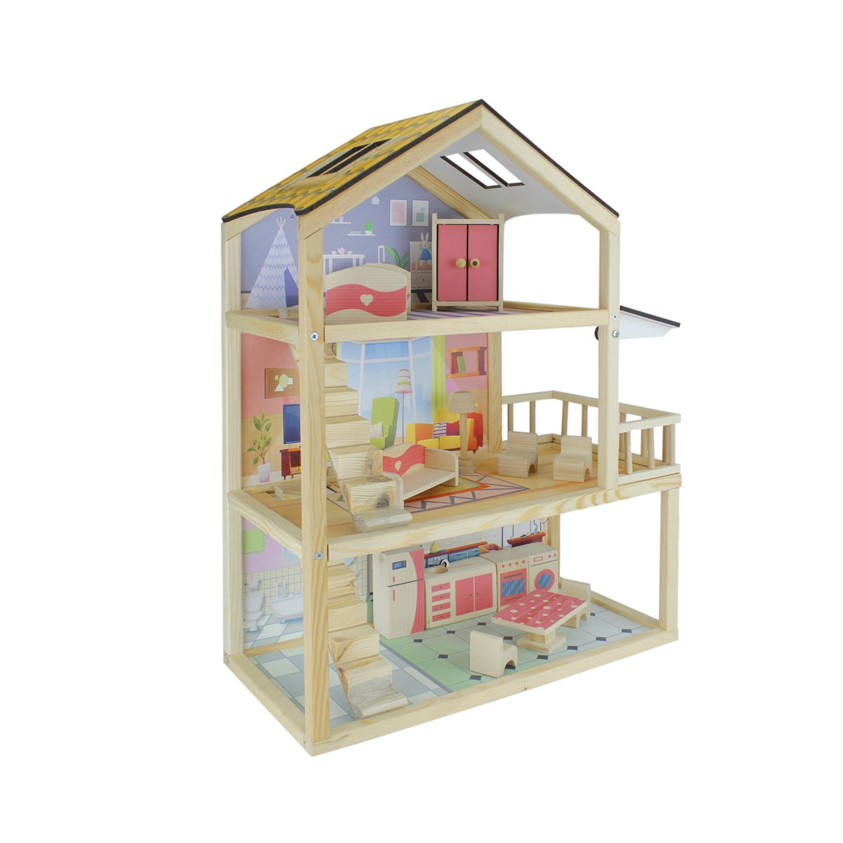 13 Parça doğal ağaç oyun eşyası ile birlikte gönderilmektedir. Görsel baskılar
