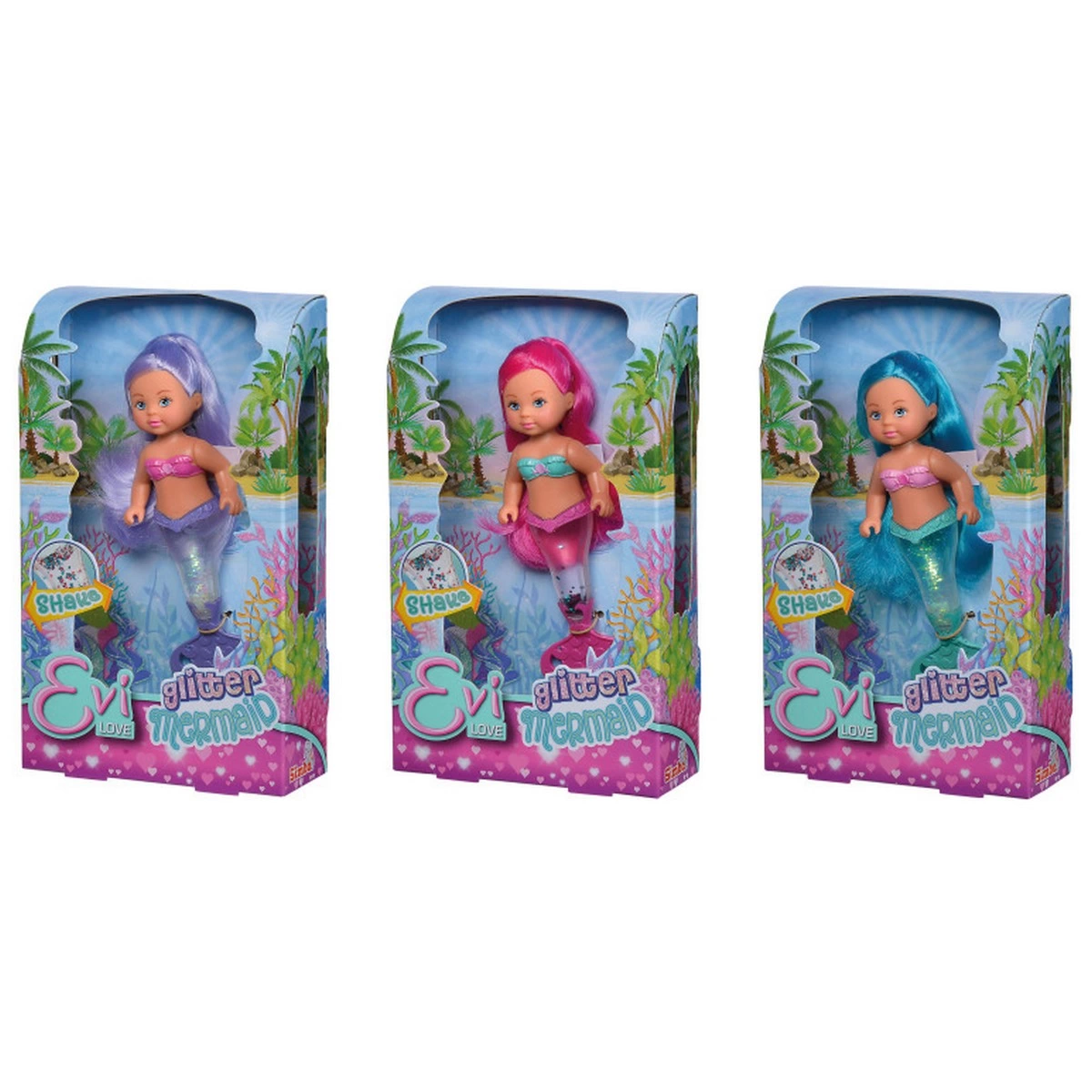Evi Love Parıltılı Denizkızı Bebeği, sallandığında parlayan özel kuyruğu ve canlı renkleriyle dikkat çeker.