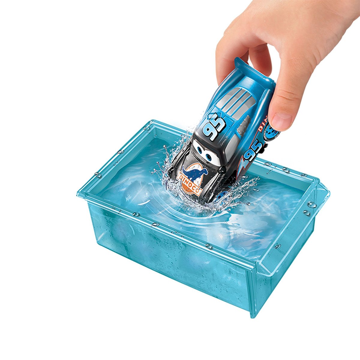 Yeni araba rengini ortaya çıkarmak için McQueen’i platformdan kaydırın, rampadan aşağı gönderin ve kurutma süngerlerinin arasından geçirin. Ardından McQueen’i soğuk su tankına sokup rengini eski haline getirerek tüm eğlenceye baştan başlayın!