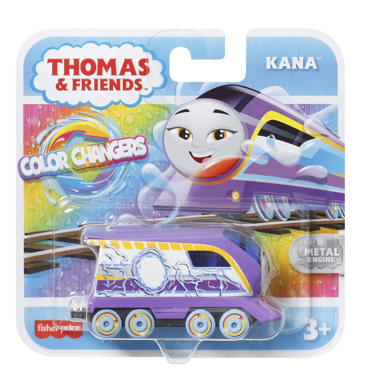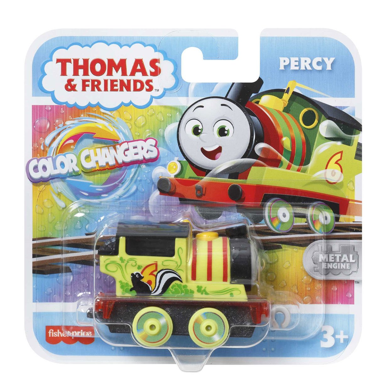 Suya daldırıldığında renk değiştiren Thomas ve Arkadaşları™ karakterlerini içeren metal ve tekerlekli lokomotif koleksiyonu.