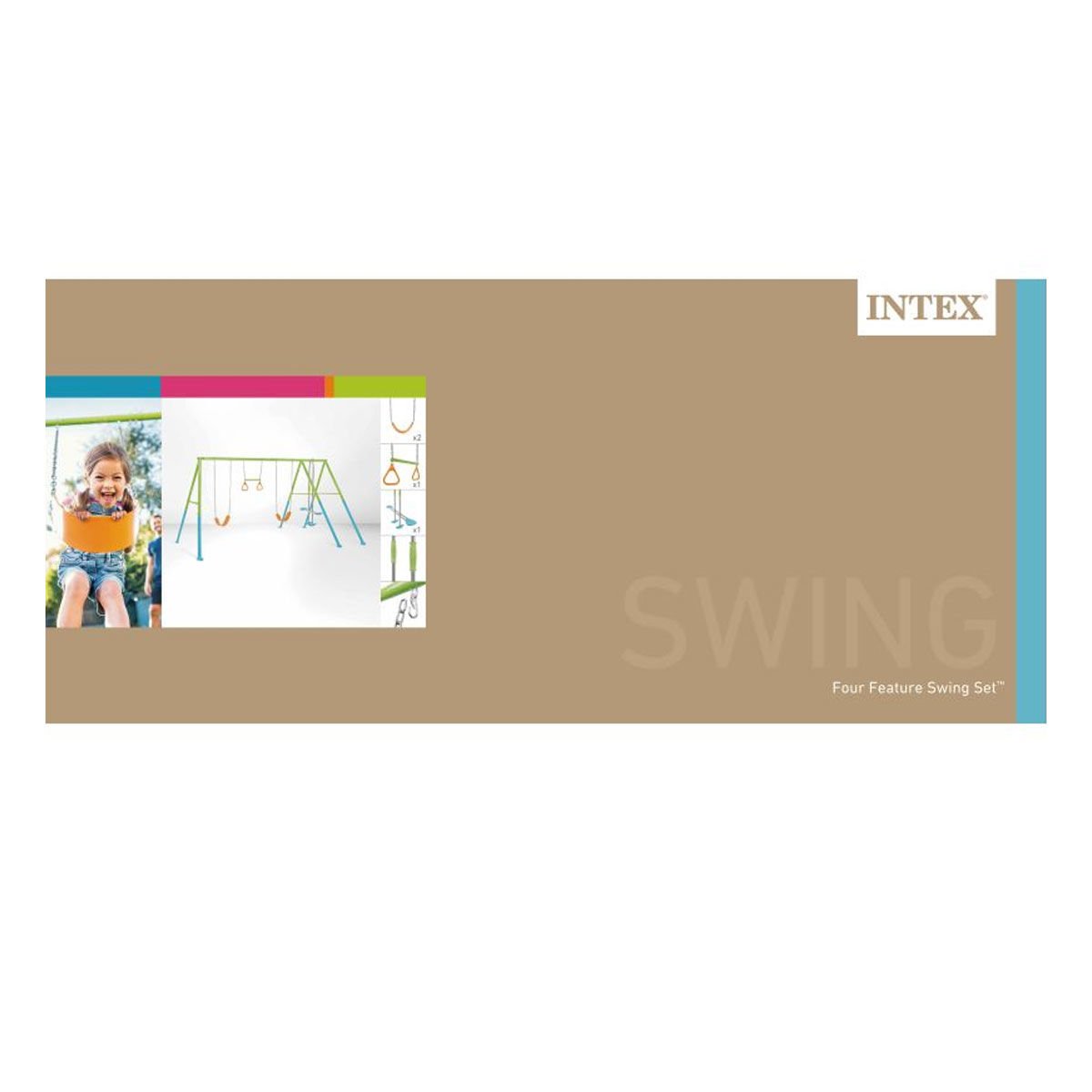Çocuklar, kalite ve güvenlik öncelikli olarak tasarlanmış bu INTEX dört özellikli salıncak setini çok sevecek.