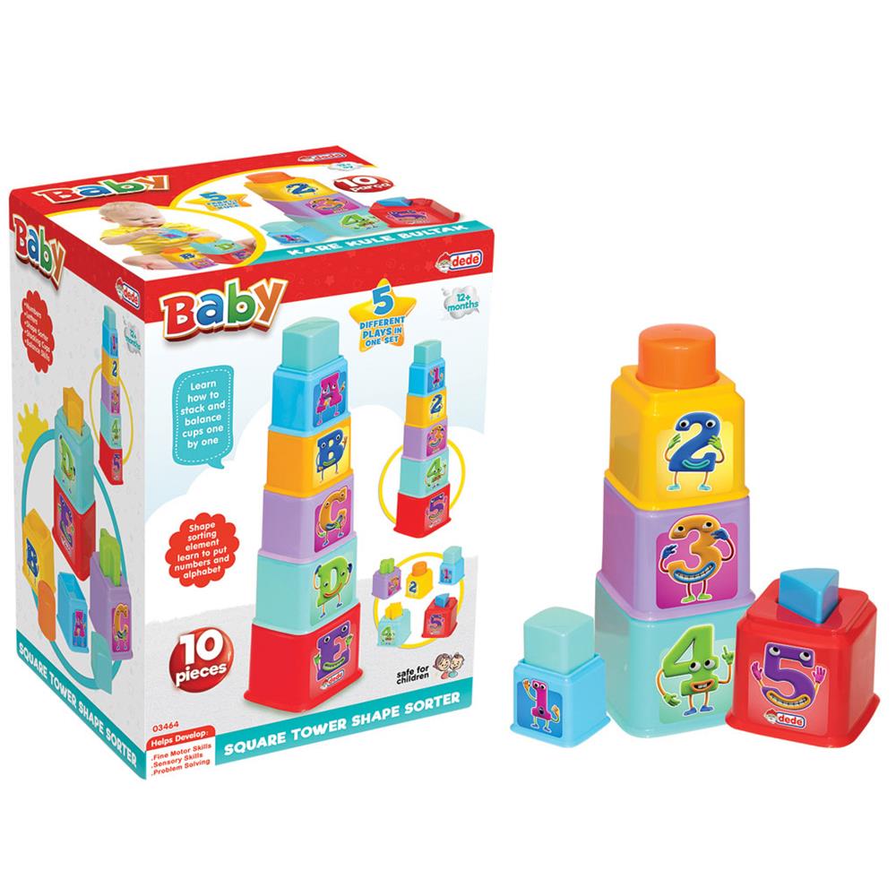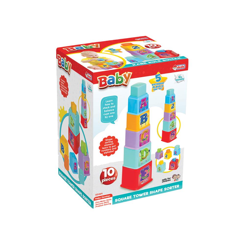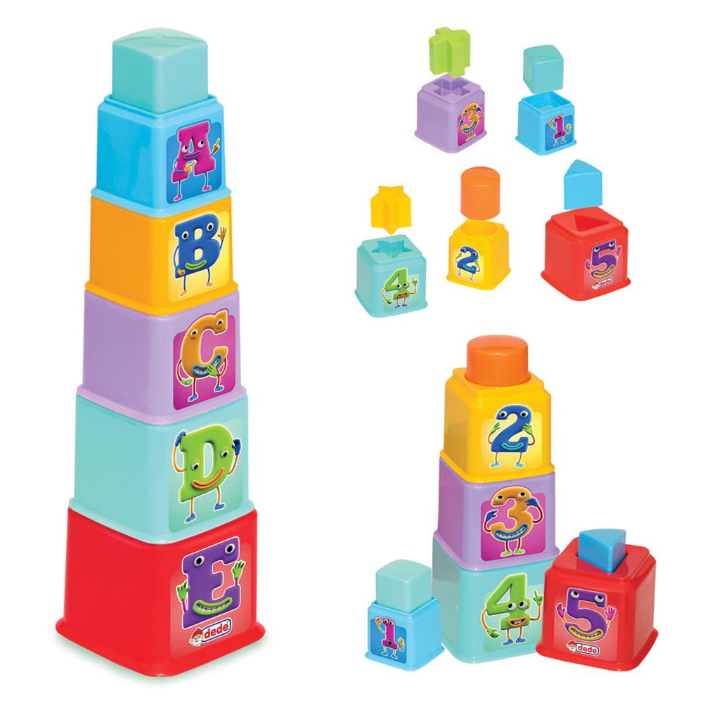 10 Parçadan oluşan bultak set ile çocuğunuz renkli kuleler ve içlerindeki geometrik şekillerle 5 farklı oyun geliştirebilir, renkleri, alfabeyi, şekilleri ve sayıları öğrenebilir.