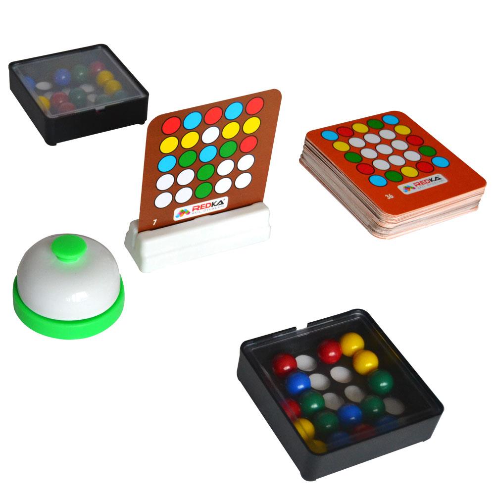 REDKA Becerikli Parmaklar kutusunda 60 adet görev kartı, 1 adet kart tutacağı, 2 adet oyun platformu ve 1 adet zil bulunur.