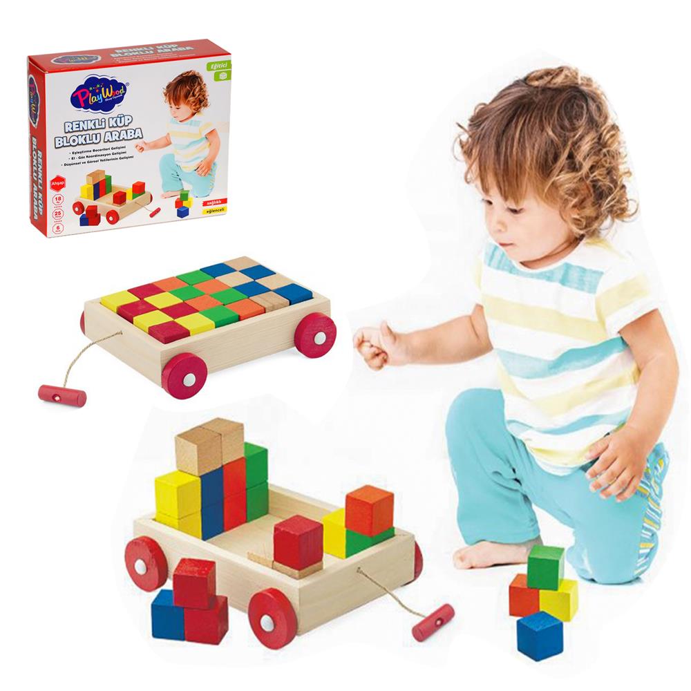 Renkli Küp Bloklu Kutulu Ahşap Çekçek Araba