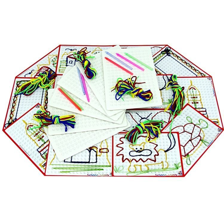 Geometrinin en basit ve temel kurallarından biri üzerine kurulmuş bir mantığa sahip: "İki noktadan bir doğru geçer." Ürün, üzerinde özel tasarım delikleri olan, çok yumuşak bir maddeden basılmış bir oyun platformu olarak düşünülebilir. Bu deliklere özel tüplerin içerisinden geçirilmiş renkli ipleri tutturulabiliyorsunuz, bu sayede de delikler arasında renkli renkli çizgiler oluşturulabiliyor.