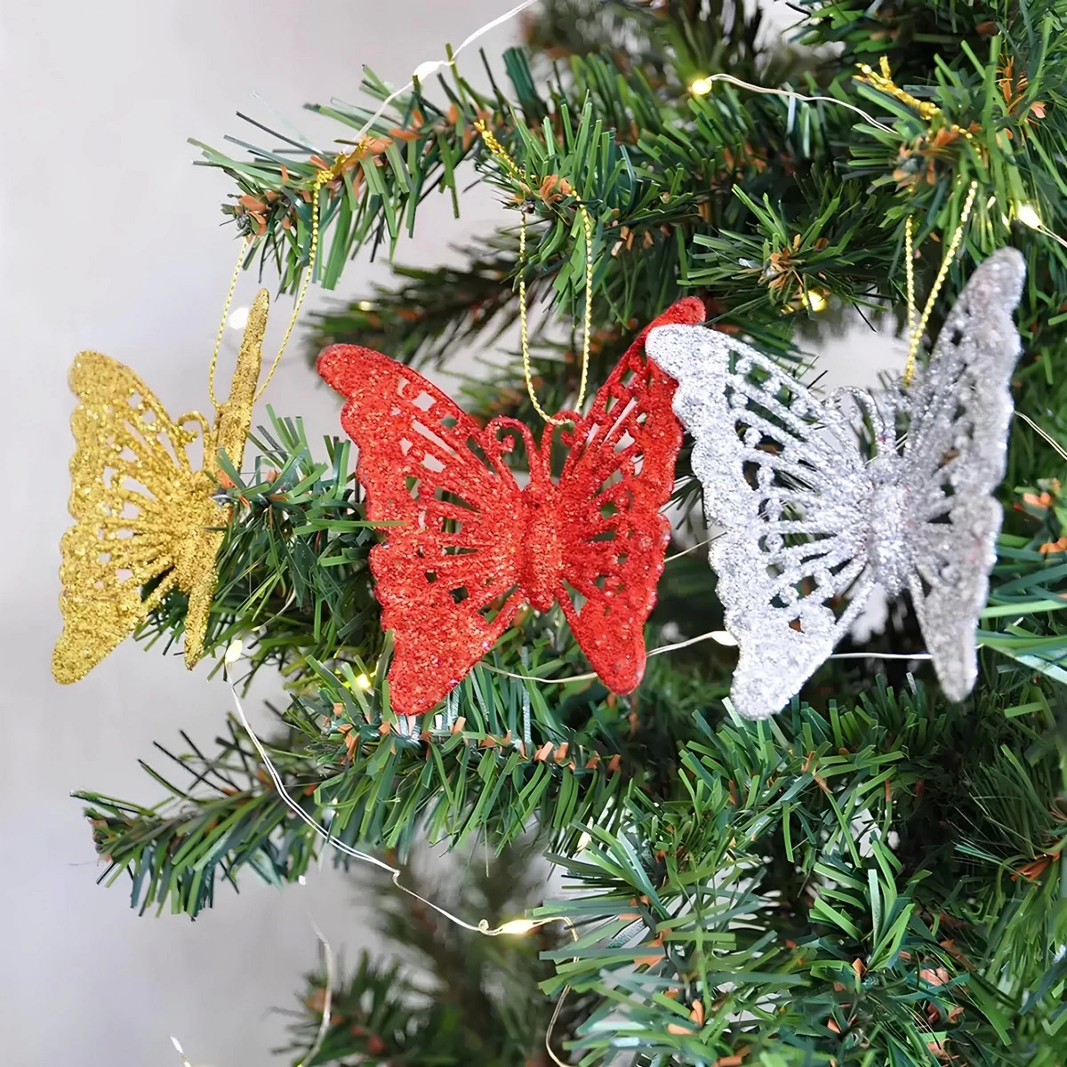 Simli Kelebek Yılbaşı Ağaç Süsü seti, yılbaşı ağacınızı zarif ve renkli bir şekilde süslemek için mükemmel bir tercihtir!