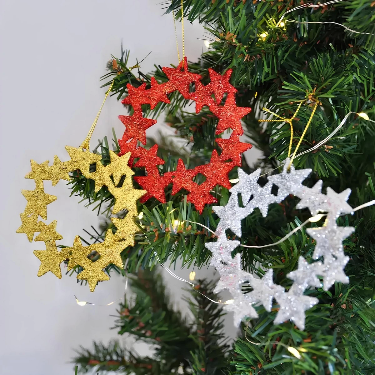 Simli Yıldızlar Yılbaşı Ağaç Süsü 3'lü