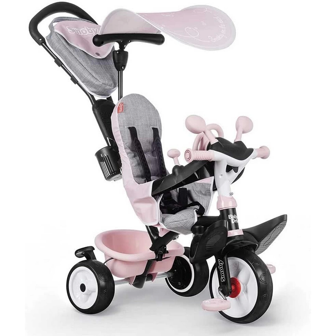 Smoby Bebek Sürücü Pembe Üç Tekerlekli Bisiklet, küçükler için hem eğlenceli hem de güvenli bir sürüş deneyimi sunar.