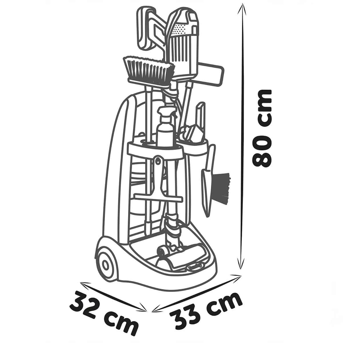süpürge, fırça, faraş, paspas, sprey şişesi, sabun, sünger, kova ve çekçek de yer alıyor.