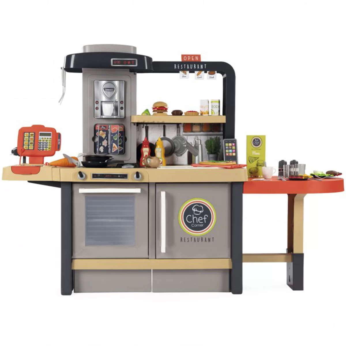 Küçük Şefler için Smoby'den harika Chef Corner Restaurant. Yemek yeme alanı, mutfak alanı ve kasa alanı ile
