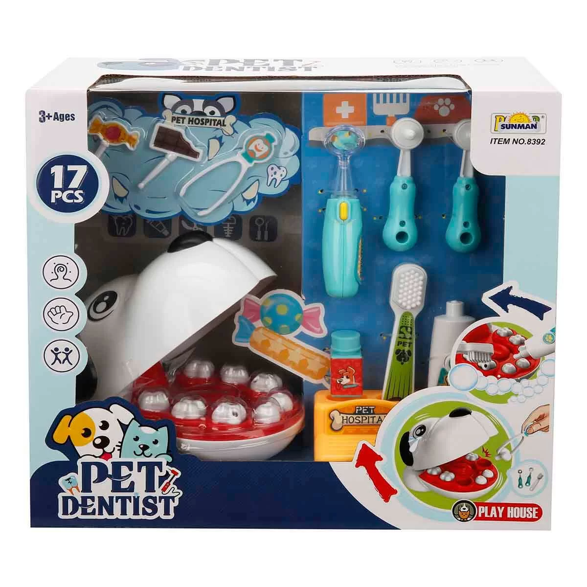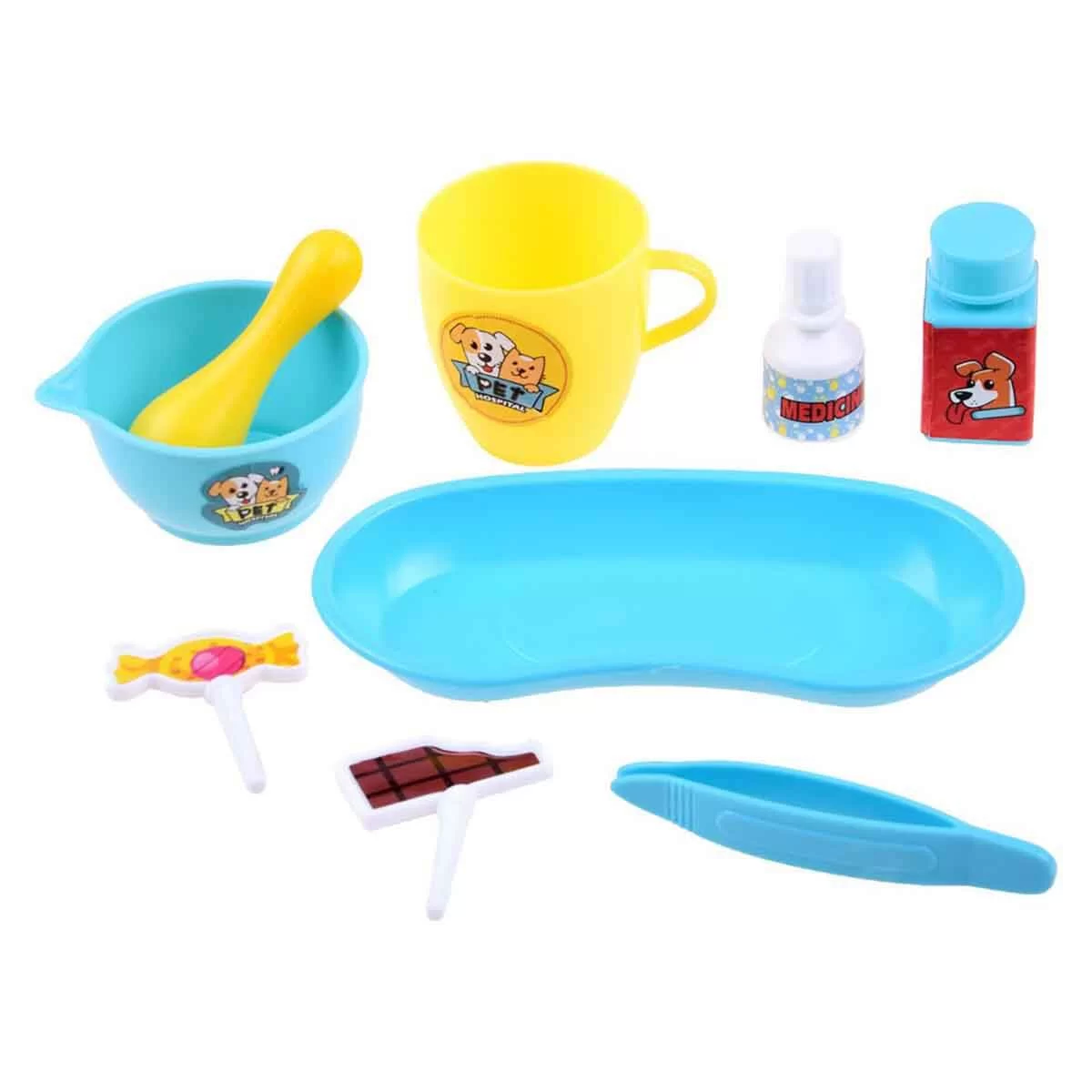 Set içerisinde; 1 bardak, 1 ayna, 2 dolgu yapma aleti, 1 cımbız, 1 diş macunu, 1 fırça, 2 ilaç kutusu, 1 mama kabı,