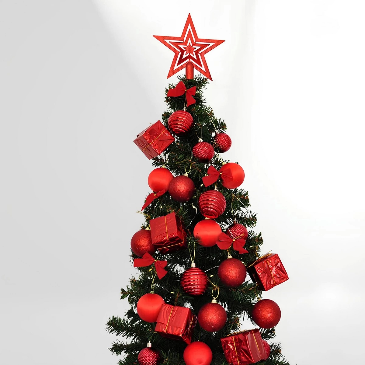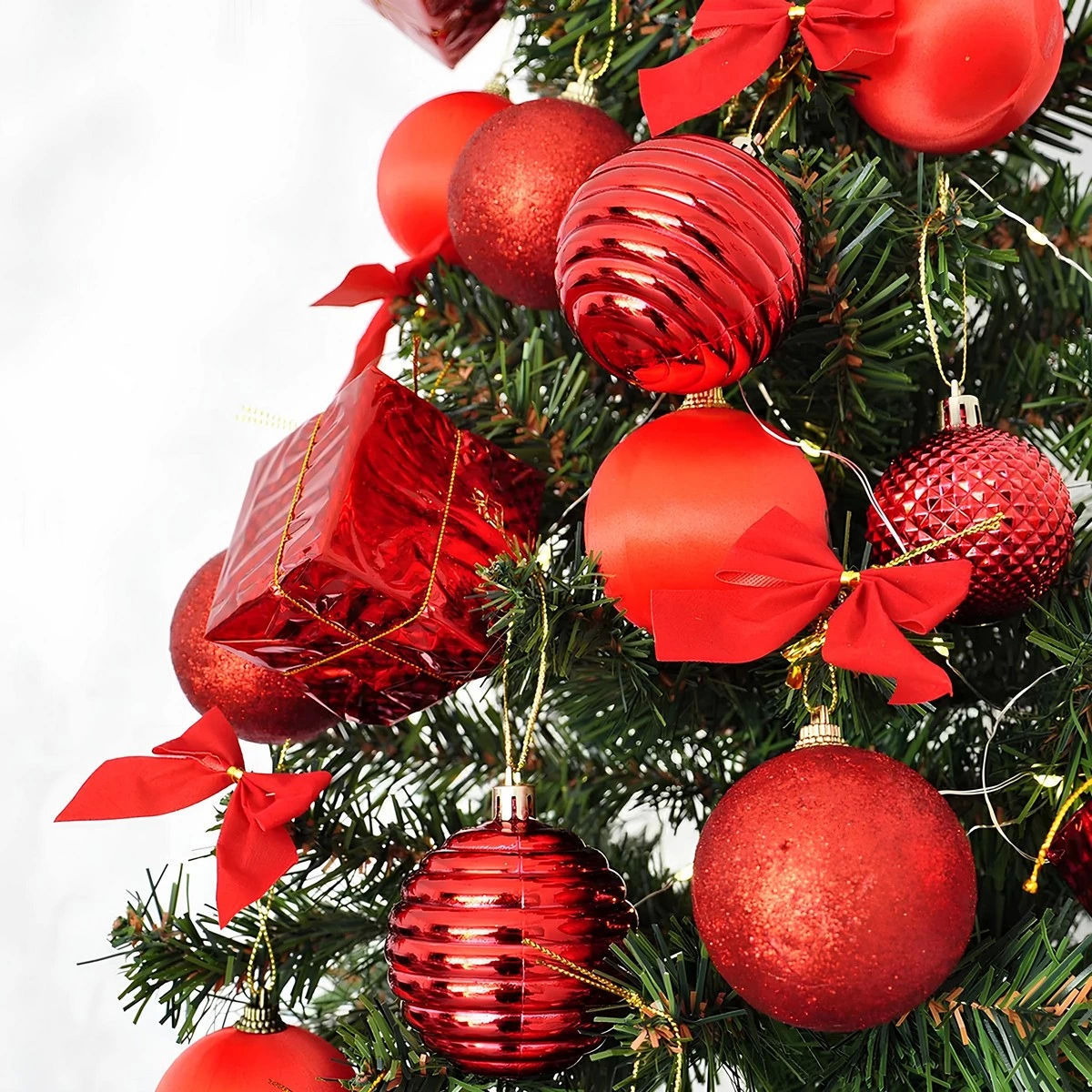 Yılbaşı ağacınızı zarif ve modern bir görünümle süslemek için tasarlanmış Yılbaşı Ağaç Süsleme Seti Kırmızı, ışıltılı ve şık bir