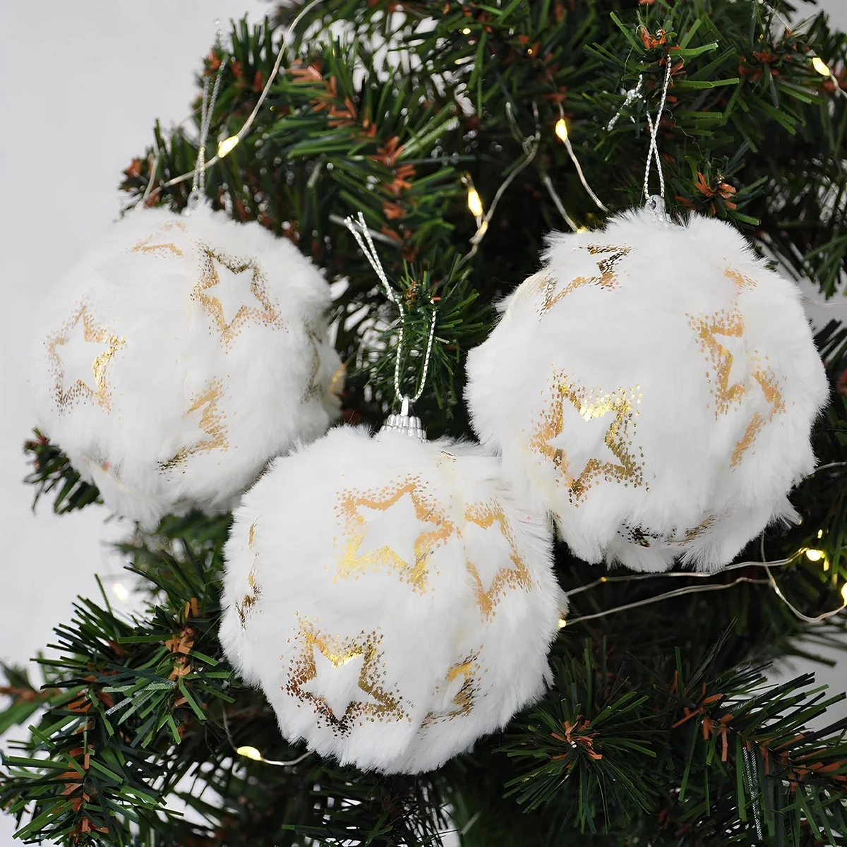 Yılbaşı Ağaç Süsleme Topu Peluş Yıldızlı 3'lü Pvc Kutu 8 cm